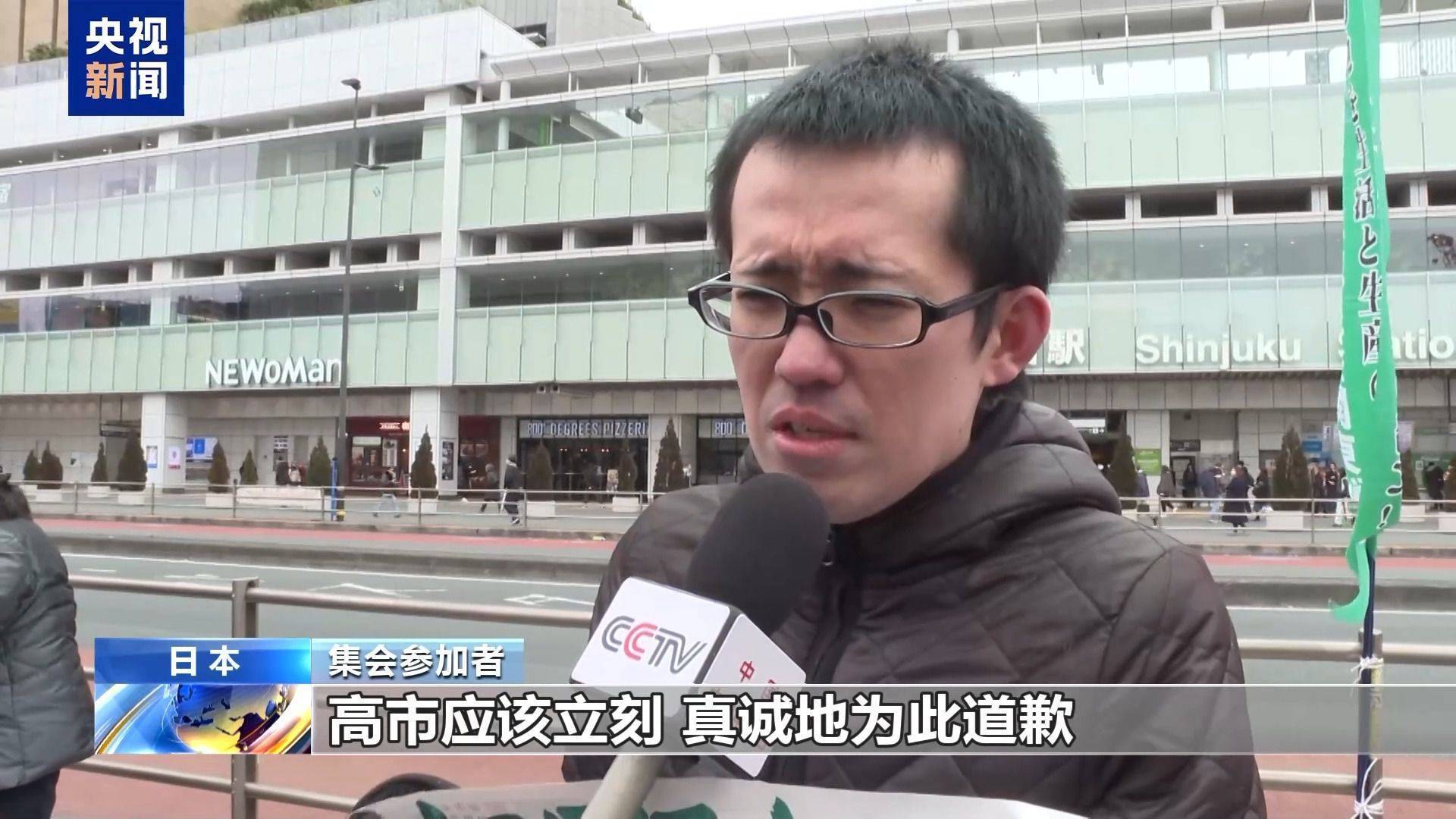 集会参加者:日本国内对高市感到愤怒的人有很多,如果真的把国民的生活放在第一位,日本政府就应该把外交做好,明确表示不挑动战争,遵守和平宪法,这才是最重要的。