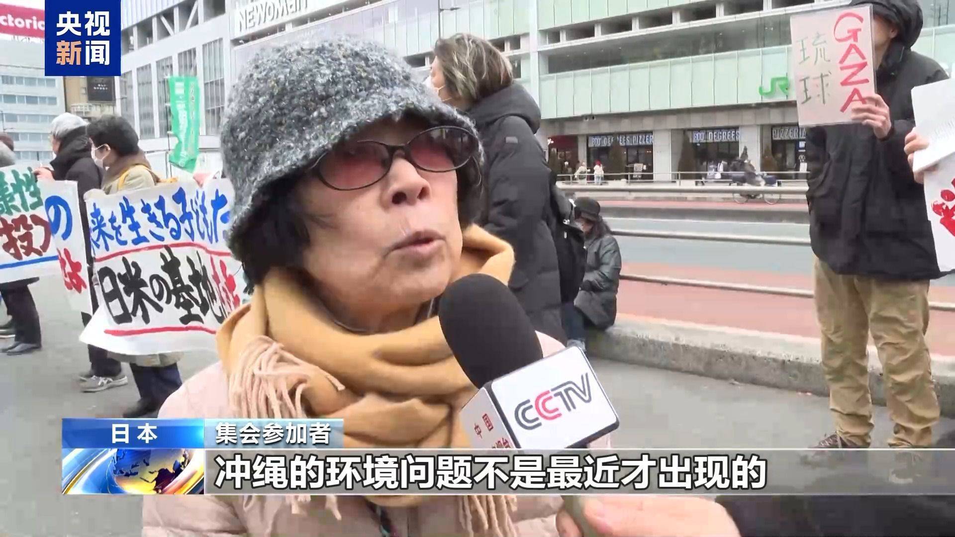 r驻日美军设在冲绳县宜野湾市的普天间基地周边井盖近日被发现冒出大量白色泡沫。分析结果显示,泡沫中所含全氟和多氟烷基物质浓度远超日本暂行国家标准。对此,集会参加者也表示担忧。