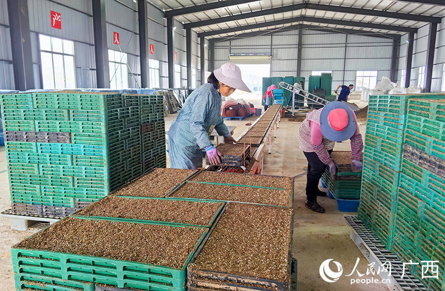 合山市(河里)水稻产业中心育秧基地生产车间。人民网记者 付华周摄